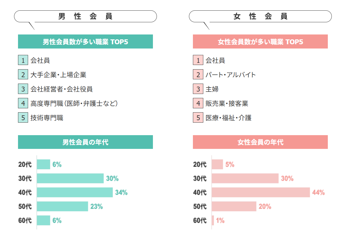 登録者数は50万人を突破しており、そのうちの46%が女性ユーザーなので、マッチングがしやすいです◎